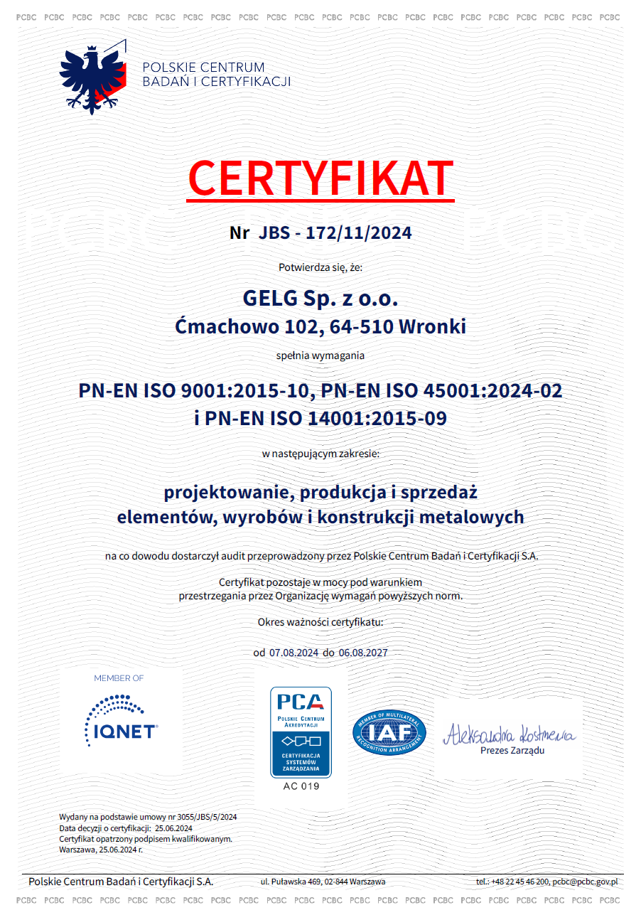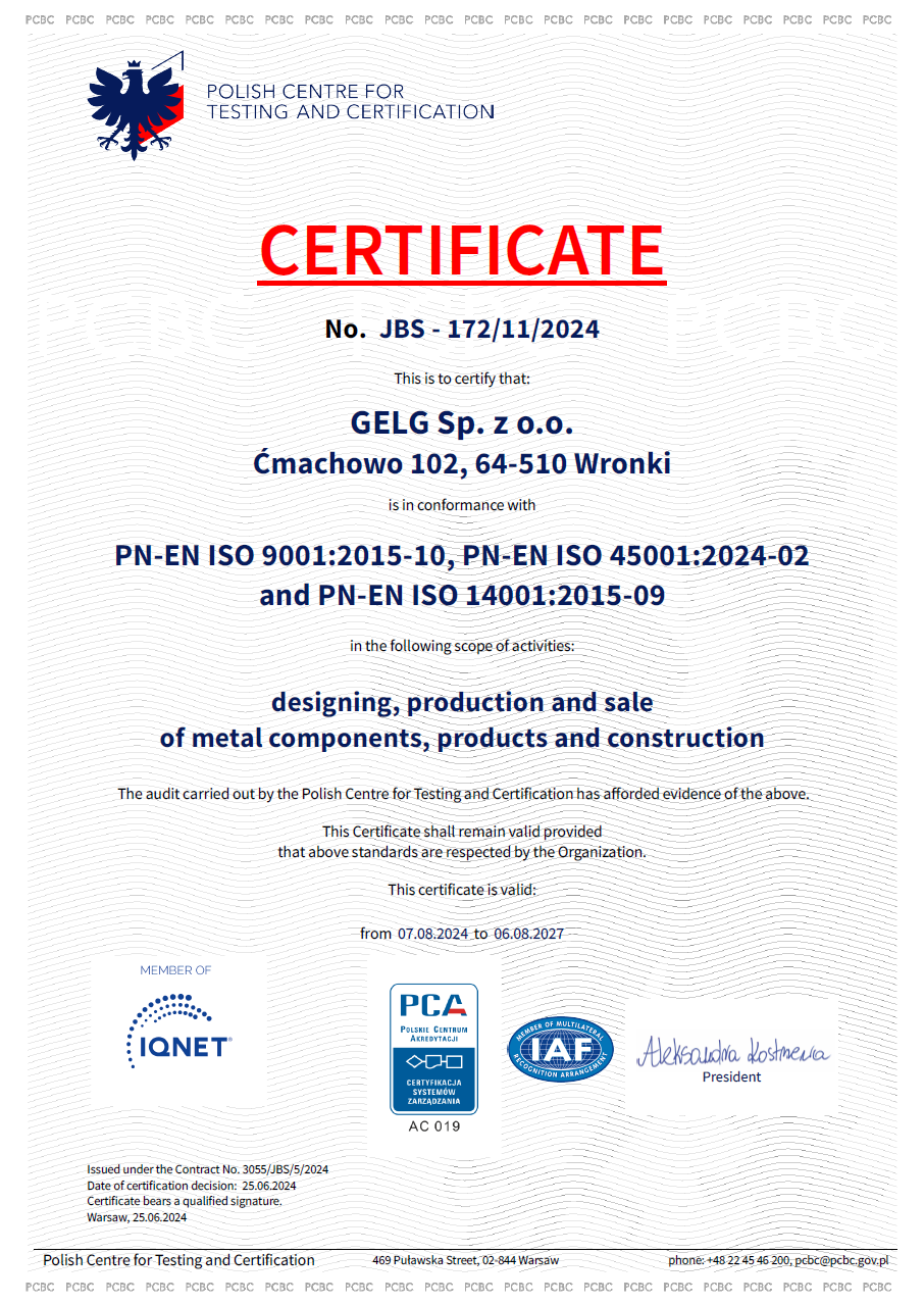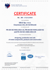 Nasze procesy obróbki metalu prowadzimy w oparciu o Kodeks Postępowania oraz Zintegrowany System Zarządzania zgodny z wymaganiami norm PN-EN ISO 9001:2015; PN-EN ISO 14001:2015 i PN-ISO 45001:2018 dla realizacji celów: